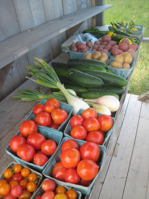 The tomatoes are starting to come in as well as the corn. It’s not as bountiful yet as the picture from last year, but we do have cherry tomatoes, zucchini, cucumbers, sweet onions, and potatoes with more variety in the weeks to come.
